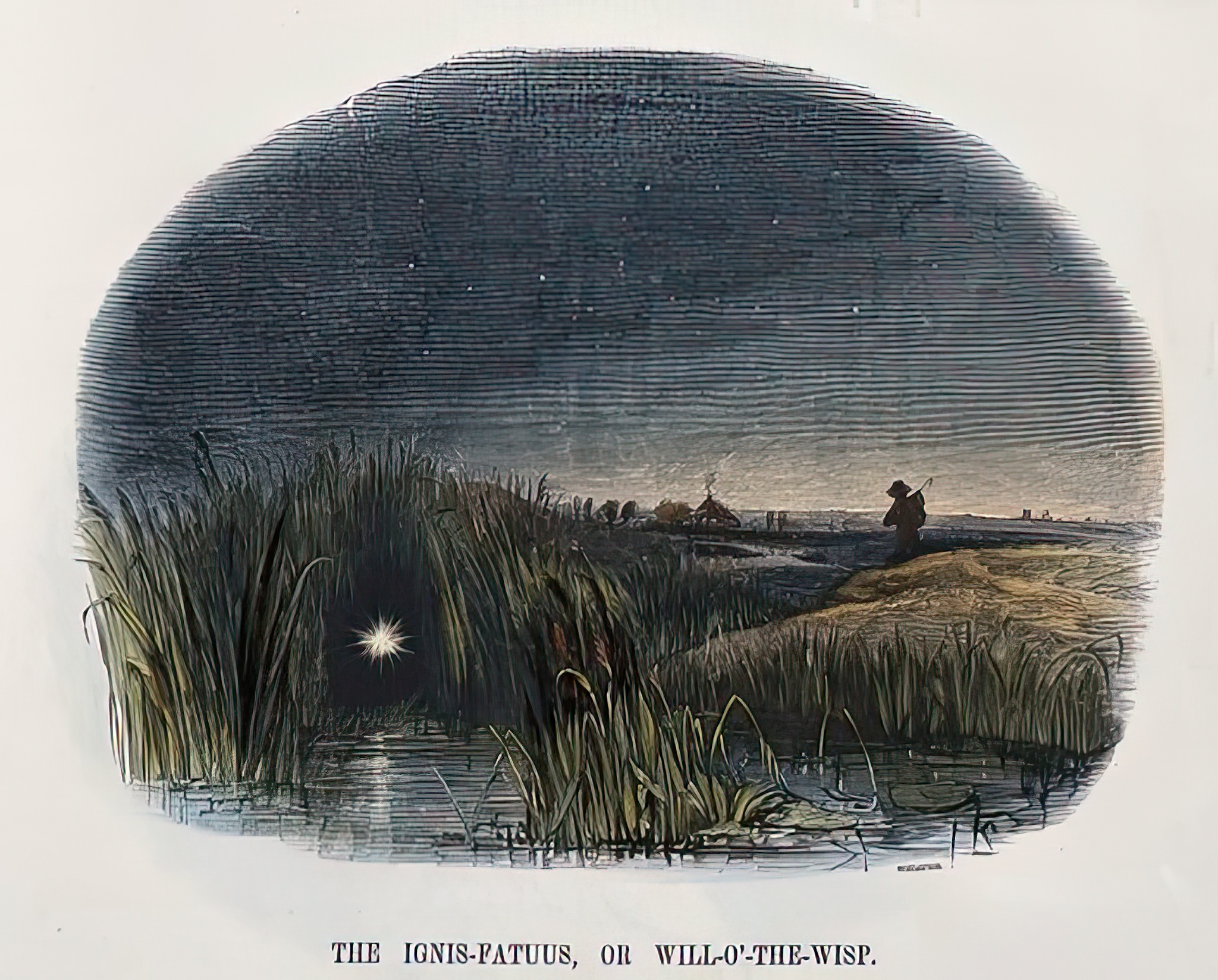 We then hear what scientists of the 16th and 17th century made of ignis fatuus, often relating it unexpectedly to meteors or luminous insects, while mocking “the superstitions” who imagined it as wandering spirits alight with the flames of Purgatory.